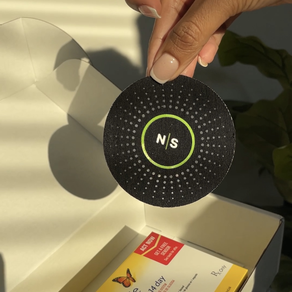 Nutrisense combines a Continuous Glucose Monitor, a connected app, and expert dietitian support to give you information to take charge of your health. The small CGM device stays on the back of your arm to give you valuable feedback throughout the day via the connected app.